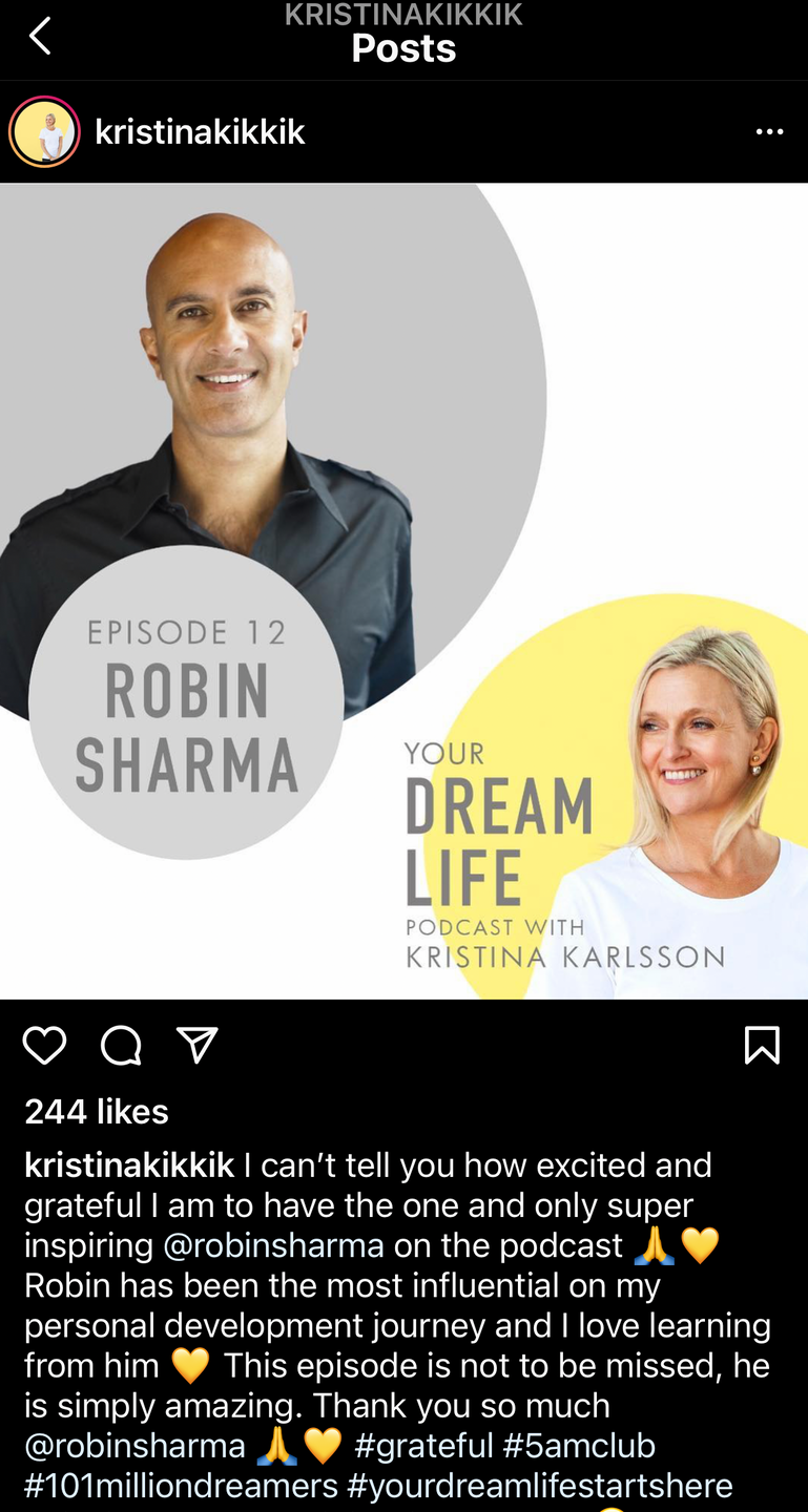 Now, with deep personal experience of the power of turning dreams into reality, Kristina has developed her own unique approach to the practice of dreaming - then doing - and is on a mission to inspire & empower millions of people the world over to discover and follow their own dreams through her new movement & 100% focus, Dream Life.